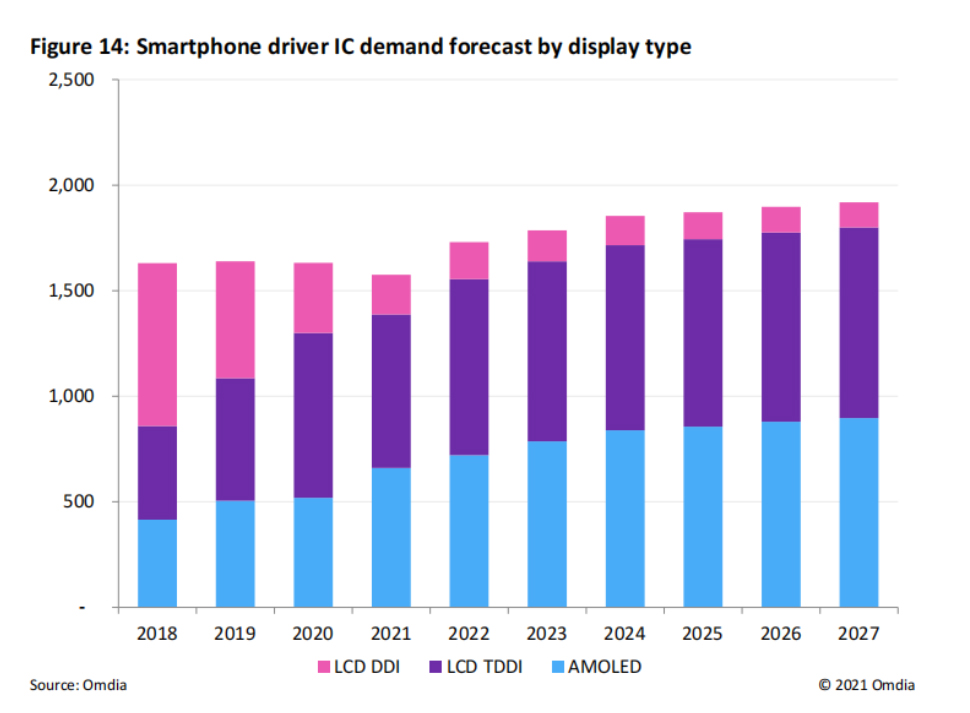 TDDI方案因架構(gòu)的高度集成性,具有顯示屏輕薄化,降低成本,簡化供應(yīng)鏈等優(yōu)勢,成為了目前手機LCD屏的主流方案,從2020年LCD TDDI方案在智能手機顯示觸控應(yīng)用占比已超過50%。