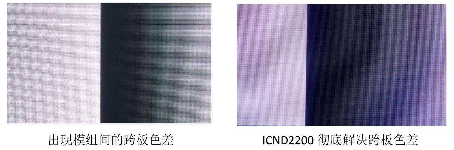 利于行列合一的分區(qū)域控制的框架優(yōu)勢(shì),以及獨(dú)特的高對(duì)比度干擾處理技術(shù),ICND2200能徹底解決目前困擾小間距的高對(duì)比度干擾造成的跨板色差及高低亮耦合問(wèn)題。