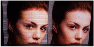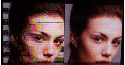 2. 雙鎖存產(chǎn)品部分照片沒有出現(xiàn)掃描線,說明刷新率足夠,但仍然出現(xiàn)了嚴(yán)重的顯示失真(如圖二,圖六)